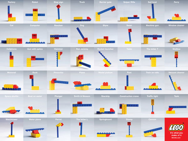 Si Lego attise la créativité des enfants, c’est également le cas des publicitaires qui s’en donnent à cœur joie pour recréer un univers fait de Lego. Voici donc une compilation de mes 50 publicités préférées pour Lego datant de ces 15 dernières années. Comme vous le remarquerez, ces affiches ne s’adressent pas aux enfants, mais plutôt aux parents, qui eux même ont grandi avec les Lego, et voudront certainement transmettre cette passion à leurs enfants.